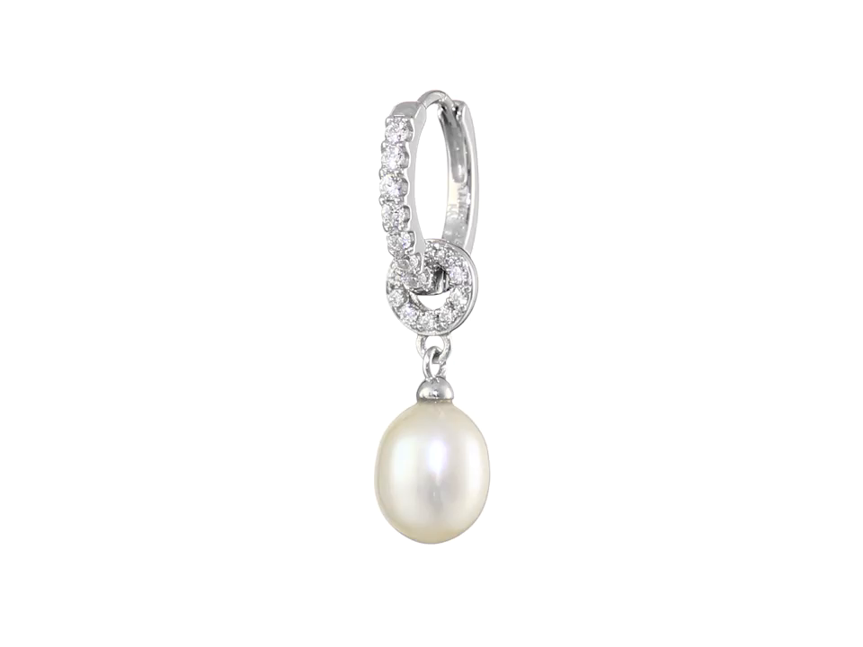 Sterling Silver 8-9mm White Oval Freshwater Cultured Pearl and Swarovski Cubic Zirconia Mini Hoop Earrings