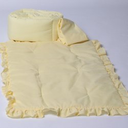 -. Feature : Includes: Bumper, Comforter, Fitted Sheet, Dust Ruffle / Fabric Content: 65% Cotton/35% Polyester / Machine Washable / comforter has ruffle all around