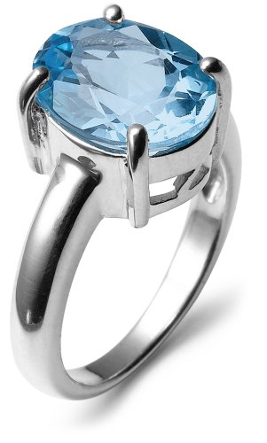 A wonderful gift for her December birthday, the Sterling Silver Oval Blue Topaz Ring is full of radiant color. Sitting atop a smooth sterling silver band is an oval-shaped Blue Sapphire stone which showcases regal shine in its 4-prong setting. The basket setting that holds the stone contains exquisite detailing down the side of the ring, creating a luxurious look. A classic accessory for day or evening wear.Feature
