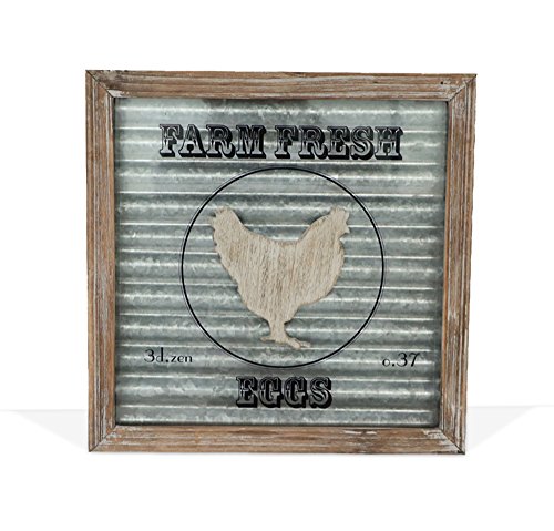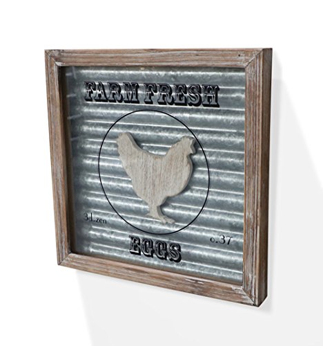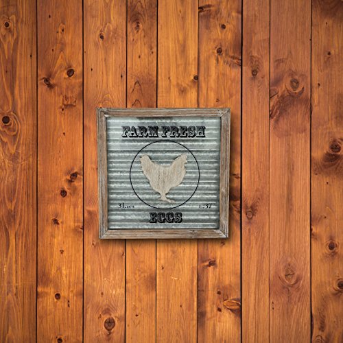 FARMHOUSE ACCENT - Rustic style fresh eggs box sign carefully crafted to give it the vintage, country style look to compliment your country home décor. Wooden frame is faded and worn and corrugated sheet metal backing gives it our signature country feel.