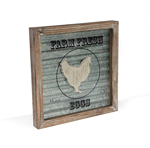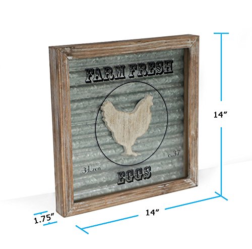 Barnyard Designs Farm Fresh Eggs Wooden Framed Box Sign with Glass Paneling and Corrugated Sheet Metal Backing | Country Home Decor, 14" x 14"