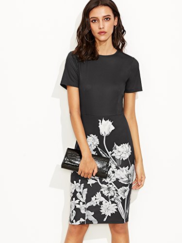 -. Title : Floerns Women's Floral Short Sleeve Flower P.R.Int Bodycon Pencil Dress
