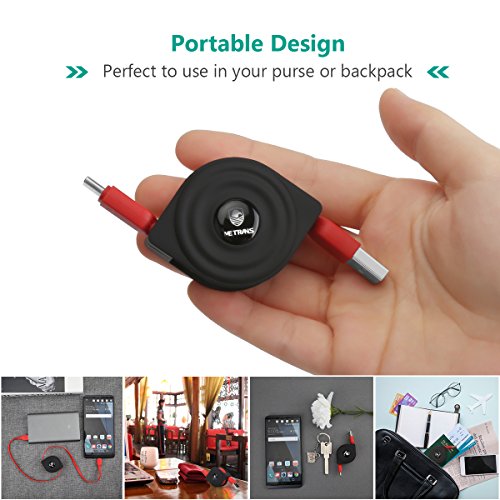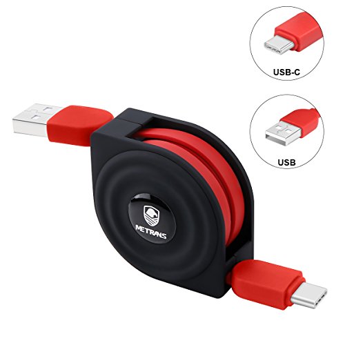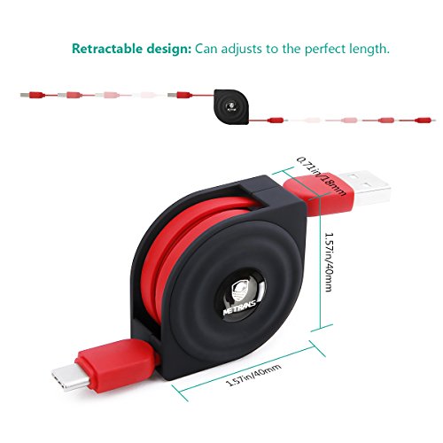 Retractable USB C Cable, Metrans Data Sync 2A Charging Cable Cord for Samsung Note 8/ S8 / S8 Plus Macbook 12" Nexus 6P Pixel XL LG G5(Red&Black, 3.3ft)