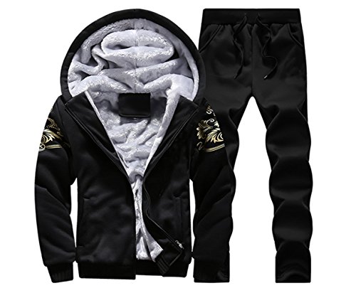 -. Title : LOVEBEAUTY Men's Cotton Fur Lined Hoodies Coat Thick Winter Jacket Pants Set