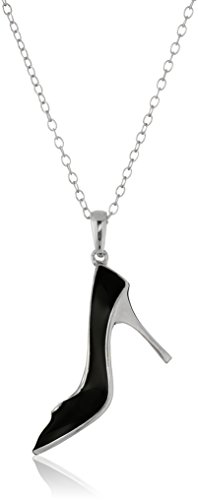 Sterling Silver Diamond Accent High Heel Shoe Black and Red Enamel Pendant Necklace, 18 inches