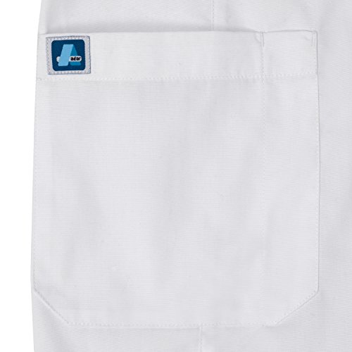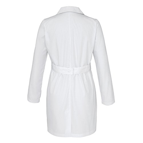 Beautifully detailed lab coat in a very feminine silhouette is a great addition to any professional's wardrobe. Shapely front princess seams and center back seam provide great fit. Narrow attached midriff adjustable belt defines the waistline. Seamed pen section enhances the functionality of the roomy patch pockets. Stitched seams throughout. Center back length 33" in size M.Feature