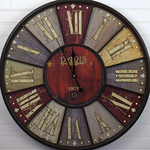 -. Feature : Beautiful Paris Wall Clock / Roman Numeral / Lovely Antique Style / Measures 23" In Diameter / VERY LARGE TO SHIP!
