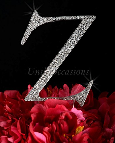 Unik Occasions Collection Crystal Rhinestone Wedding Cake Topper, Small, Letter Z, Silver
