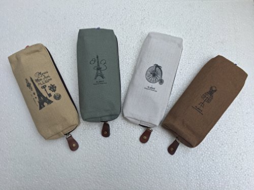 Summerose Hot Vintage Canvas Pencil Pen Case Makeup Bag Coin Pouch (Pack of 4)