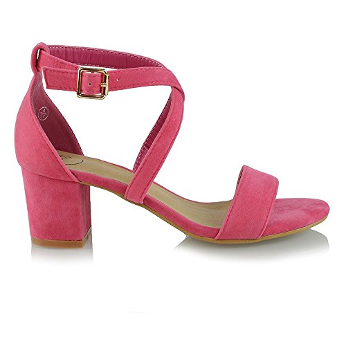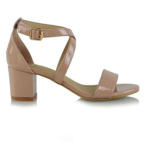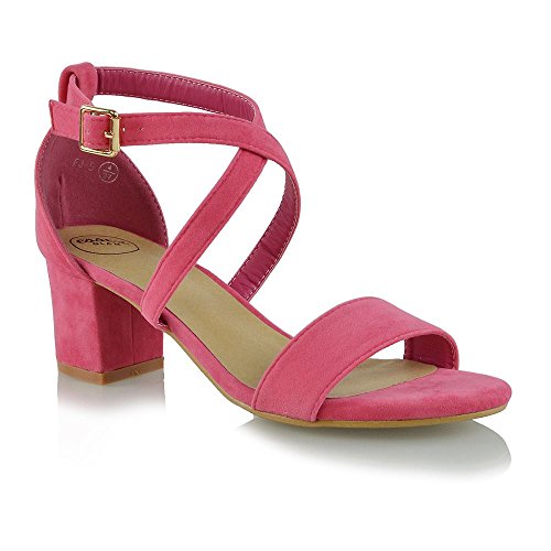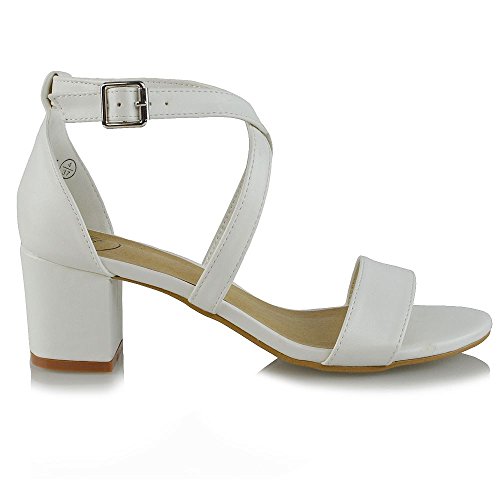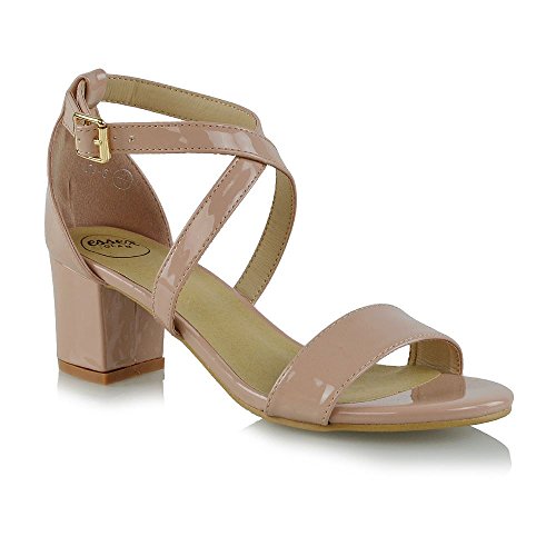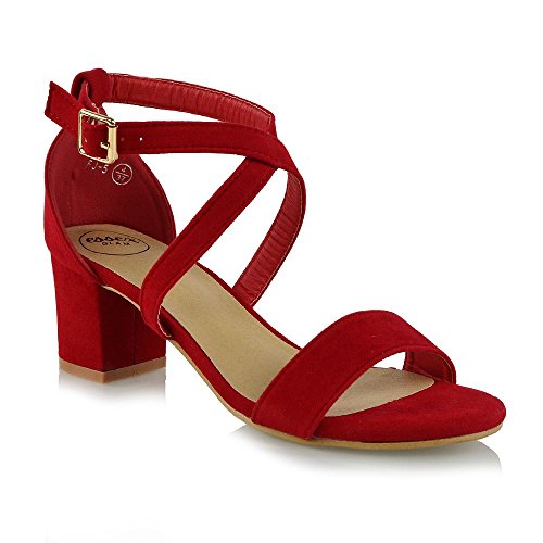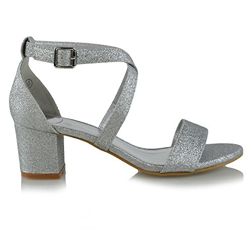 | Essex Glam Womens Strappy Block Low Heel Ankle Strap Synthetic Evening Sandals |