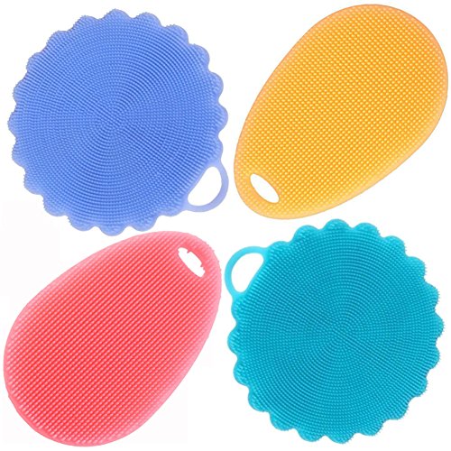Kystpinter Silicone Dish Sponge Washing Brush Scrubber Antibacterial Mildew-Free Brushes (4 Pcs)