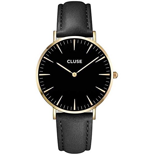 This La Boheme model features an ultrathin case with a 38 mm diameter, crafted with precision for a sophisticated and elegant result. Black and gold are combined with a black leather strap, detailed with a gold clasp. The strap can be easily interchanged, allowing you to personalise your watch.