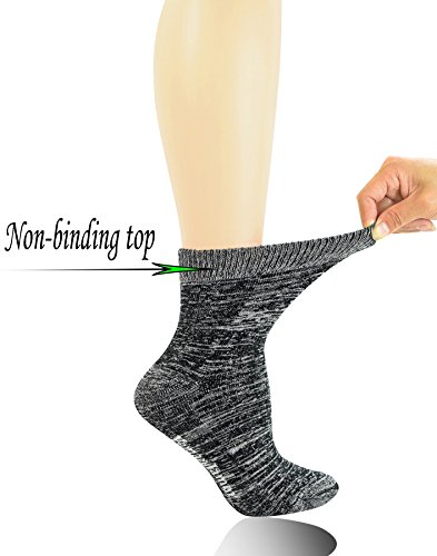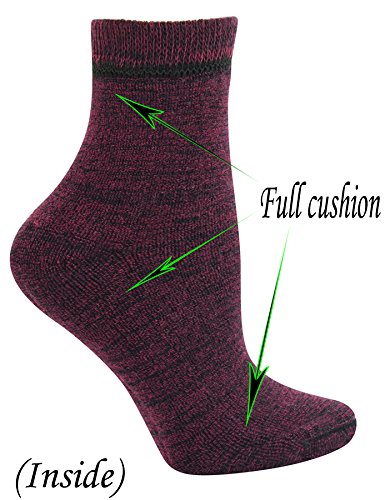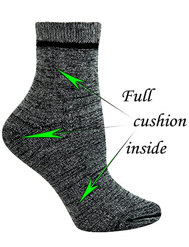 -. Feature : Bamboo firber help customer who are at risk of developing ulcers and keeping the foot dry, feeling fresh and healthy / Soft and non-binding top that will not cut off your circulation but will stay up well in the cold wether. Extra wide top that do not sag / Full cushion design. Reinforced heel and toe, extra cushioning for added comfort and protection. Padded with right thickness cushion (about 70g/pair) keep your feet warm and comfortable / Hand-Linked seamless toe eliminates bulky toe seam ,reduce the risk of infection, foot pressure, blistering; Much more comfortable and durable than normal winter socks / These socks come in a quarter length. Sock Size:9-11(Fits women's shoe size:6-10). Machine wash. 3 pairs socks contains. We stand by our products 100% and will immediately replace any products found to be defective. Simply email us with any complaints/comments.