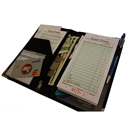 Deluxe Server Book for Restaurant Waiter Waitress Waitstaff | Highest Quality and Durability | 9 Pocket Organizer includes Zipper Pouch with Pen Holder | Holds Guest Checks, Money, Order Pad