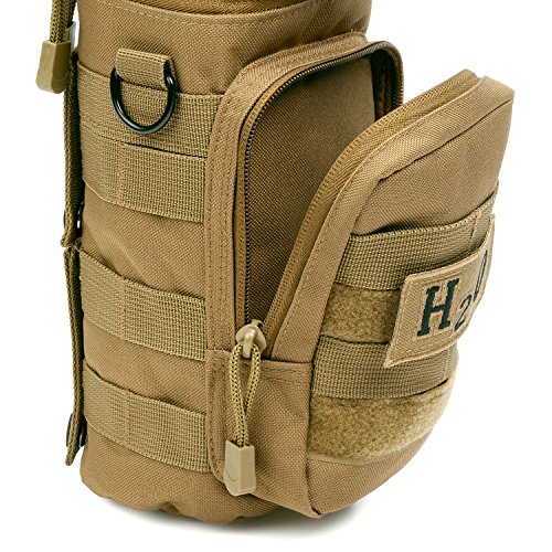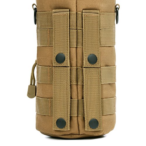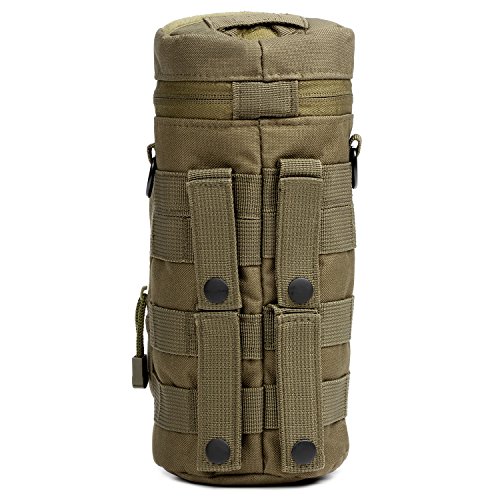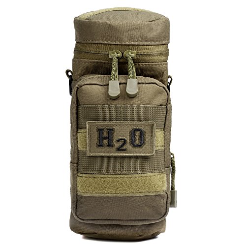 -. Feature : SNUG, TIGHT FIT: Our ORIGINAL design 4 small MOLLE strap system gives this MOLLE water bottle pouch, a secure, snug fit when attached to any MOLLE compatible gear. / 4 MOLLE STRAPS: Secures the MOLLE water bottle pouch tightly to your gear. Prevents water weight gravity from pulling the pouch downwards or from flopping around when walking or jogging. / LOTS OF ROOM, BUILT TOUGH: DIMENSIONS: 10" H X 5" D tactical water molle bottle pouch fits up to a 40 oz or 1.5 liter nalgene bottle, Klean Kanteen H2O bottles with a Camp Cup, or a 1.5L water bladder. Our water bottle pouch is even the perfect fit as a stealth carrier for your DJI Mavic Pro Drone. Made from tough 600D polyester material that makes this H2O water carrier BOTH tough and lightweight. / EASY ACCESS FLIP TOP: Includes dual YKK zippers left or right access and a Bladder Hose or Drinking Straw flap opening on the lid. / MORE INSULATION: Slightly thicker insulation on the inside to keep liquids cooler longer and provide a snug fit for your water bottle.