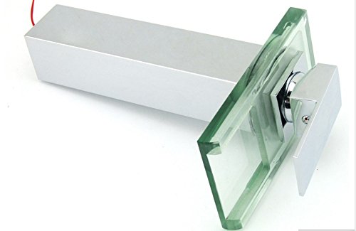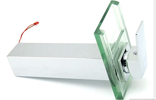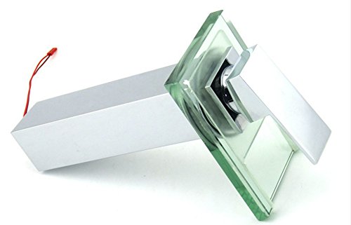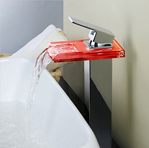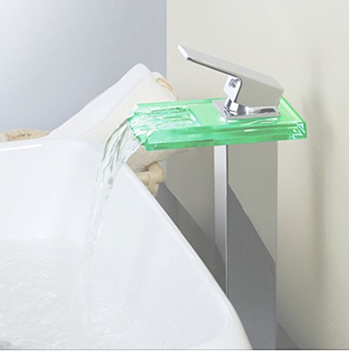 Shiratori Bathroom Sink LED Glass Faucet, RBG 3 Colors Changing Light Waterfall Spout Single Hand Single Hole Mixe Tap/Faucet Deck Mount on Sink, Polished Chrome
