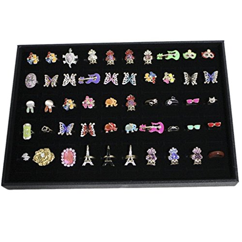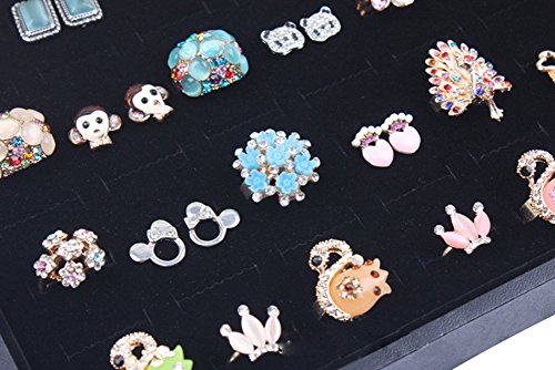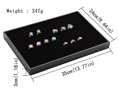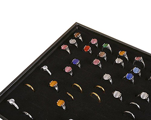 Wuligirl 100 Slot Ring Velvet Jewelry Tray Stackable Showcase Display Organizer, Black (100 Ring Jewelry Tray)