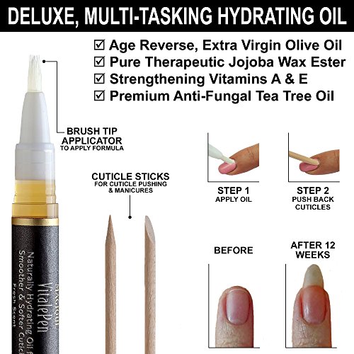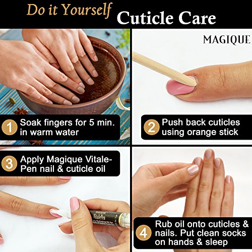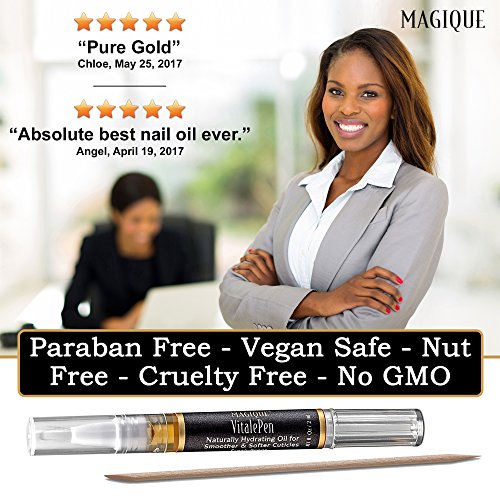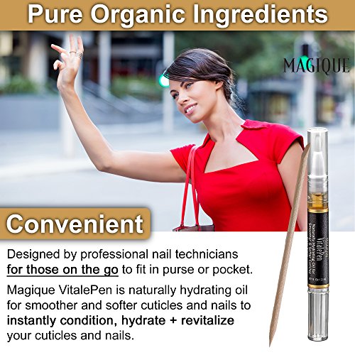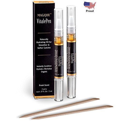 Magique VitalePen cuticle and nail oil is an essential part of a daily regimen to maintain strong, healthy nails. It penetrates deep to hydrate, moisturize, and condition the cuticle, nail, and surrounding skin. Our convenient ‘click’ pen makes it handy to apply frequently and easily. With a twist of a pen, a complex blend of oil with fresh vitamins A E power a rejuvenating jolt of repair for glowing, beautiful, and healthy cuticles and nails. WHAT IT IS: A luxurious artisan blend of premium Jojoba wax ester, olive oil, grape seed oil, vitamins A E, and fragrance oils designed to hydrate and penetrate your cuticles, nails, and skin, while electrifying your senses with a breathtaking scent. WHAT IT DOES: We all love our nails to look beautifully manicured and polished to perfection, but maintaining nail health is no easy feat. All too often nails split, crack, or break - not only is it a bummer visually, it can be totally painful too. There are things you can do to get them back into good health. Magique VitalePen cuticle and nail oils help relieve dryness, cracking of nails, and formation of hangnails. Unlike creams, oils do a better job soaking into the nail bed and moisturize the structures of the nail bed longer than creams and gels. Jojoba oil, known as nature’s multitasker and generously provided by our product, is ideal for healthily hydrating skin and nails because it mimics the natural oils our bodies produce and penetrates your nails, keeping them strong and flexible. Our charming 2 milliliter pens filled with renewing, pure oils will keep your cuticles and nails healthy! And, since you get 2 pens, it ensures you have a convenient, spill free applicator to deliver the hydrating nail oil wherever your busy and active lifestyle takes you. 0 |