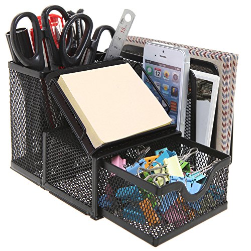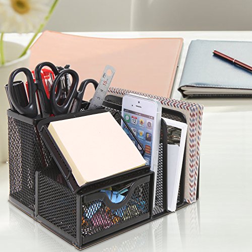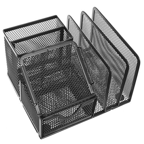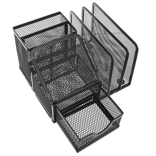 MyGift Metal Mesh Office Supplies Storage Rack, Mail Organizer, Post It Note Memo Pad Holder, Black