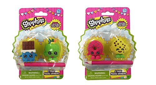 -. Title : Shopkins 2-Pack Puzzle Erasers Toy Figure Set of 4 Erasers & 2 Pencils