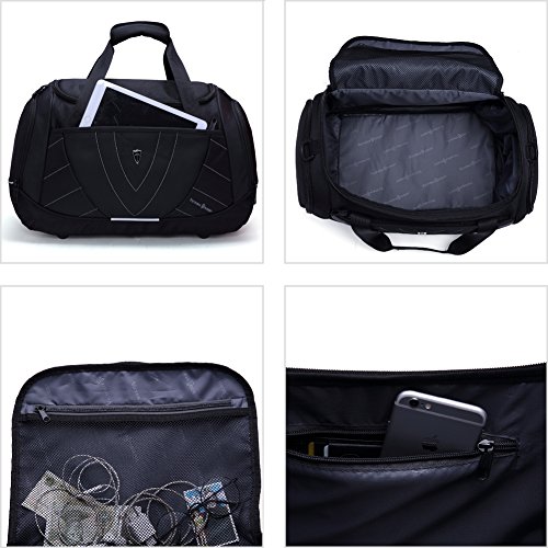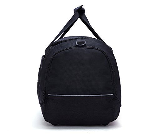 -. Feature : Made from 1200d heavy duty nylon and polyester fabric for long lasting / Features a low profile design with padded handles and an adjustable shoulder strap that offers versa / A large main compartment with a u opening, a ventilated compartment for shoes or dirty gears / A front zipper pocket for quick access to frequently-needed items, like keys, cell phone and wallet / Other features include 4 strong rubber feet, reflective accents, and a mesh zipper pockets
