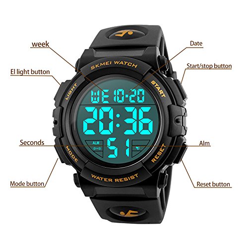 Outdoor multi-functional sports watch,Men's Classic Stopwatch,Electronic LED Backlight Wristwatch,50m deep waterproof digital watch