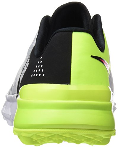 The Men's Nike FI Flex Golf Shoe features no-sew overlays and a plush foam collar for a comfortable and supportive fit. Flex grooves and a lightweight midsole provide exceptional ground feel. Inspired by Nike Free technology for exceptional ground feel and adaptive cushioning.Foam collar and tongue offer plush cushioning.No-sew overlays provide lightweight support.Nylon upper has a DWR (durable, water-repellent) finish to help keep you dry in wet conditions.External heel counter delivers an exceptionally stable feel.Lightweight Phylon midsole provides adaptive cushioning for comfort and stability through your swing.Rubber outsole features an aggressive, Integrated Traction pattern for grip on a variety of surfaces.Raised nodes provide stability and a smooth transition through your swing.Polyester Text Synthetic Leather 0 |