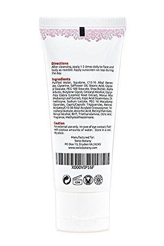 Note: Whitening and Dark spots removal need be patient. Discolored skin could balance out in as little as 30 days but could be longer depending on skin type. This is a lotion and as such takes more time to work than our Swiss Botany Whitening Cream Mask - Used together you will see results faster!