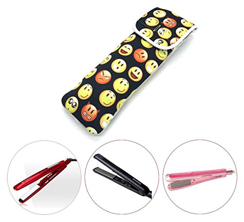 Wanty Water-Resistant Neoprene Curling Iron Holder Flat Iron Curling Wand Travel Cover Case Bag - Flat Iron Travel Pouch - Hair Straighteners Case with Velcro (Emoji)