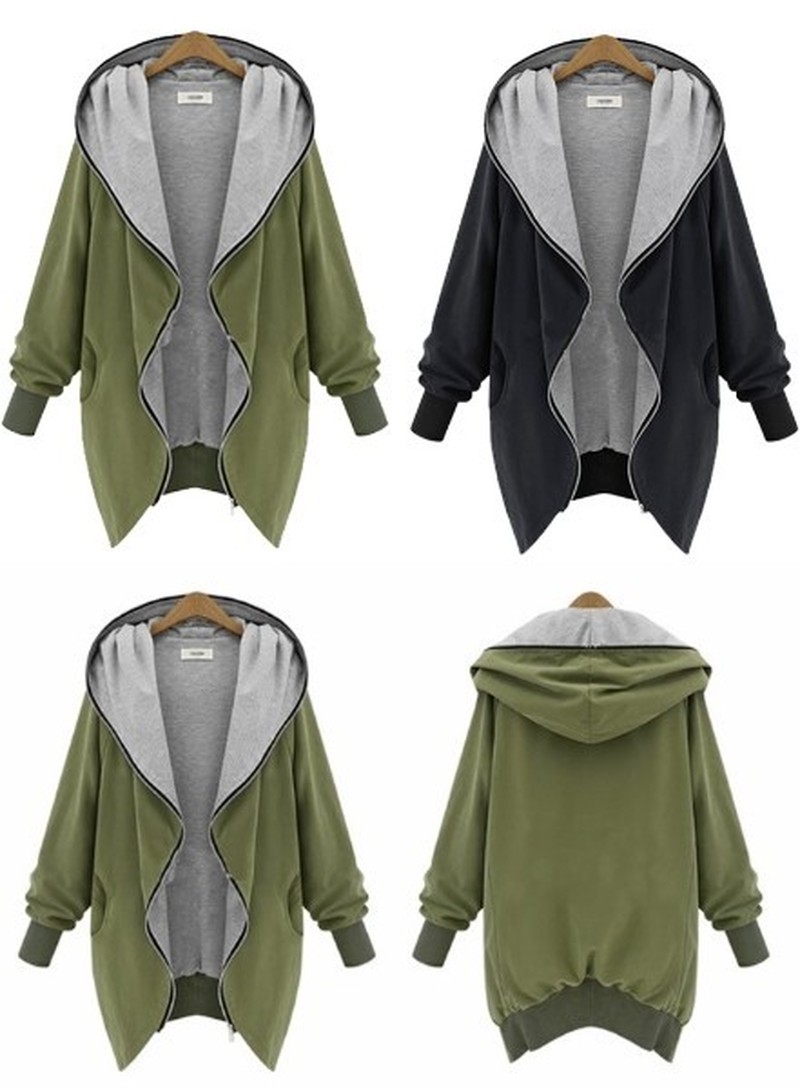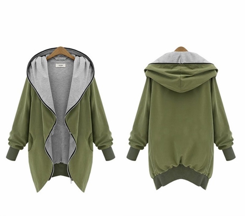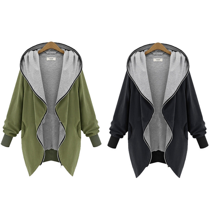 | ♢サイズ♢(cm) XL バスト:116 袖丈:68 着丈:(前)78(後)64 2XL バスト:120 袖丈:69 着丈:(前)79(後)65 3XL バスト:124 袖丈:70 着丈:(前)80(後)66 4XL バスト:128 袖丈:71 着丈:(前)81(後)67 5XL バスト:132 袖丈:72 着丈:(前)82(後)68 ♢カラー♢ ブラック、グリーン ♢ポイント♢ ゆったりシルエットがお洒落なフード付きジャケットです。 裏面がグレーになっているバイカラーがポイント♪ 【商品について】