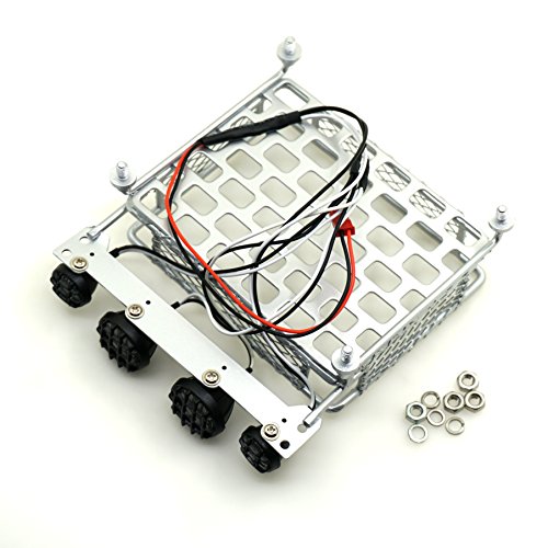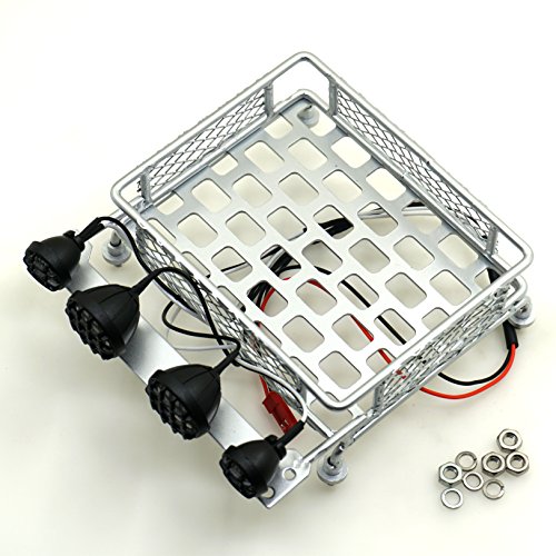 1 year money back or replacement guarantee!!! Feature: This is a metal roof rack with light bar for almost 1:8th 1:10th scale RC vehicle. Great for crawlers and trucks. Comes with 4 white LEDs(2 big 2 small) Size: Frame size :80X98mm Setup size:80X100mm Material: Metal ,Very durable and good quality. Color:Silver Include: 1pcs* 1:10th Scale RC Roof Rack 1set * LED light bar 0