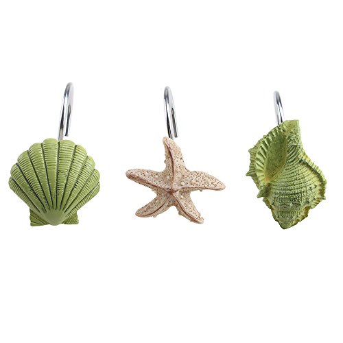 AGPtek® 12 PCS Fashion Decorative Home Bathroom Seashell Shower Curtain Hooks (Seashell: Light Brown; Starfish: Tan; Conch: Light Brown) B00OROO2YK