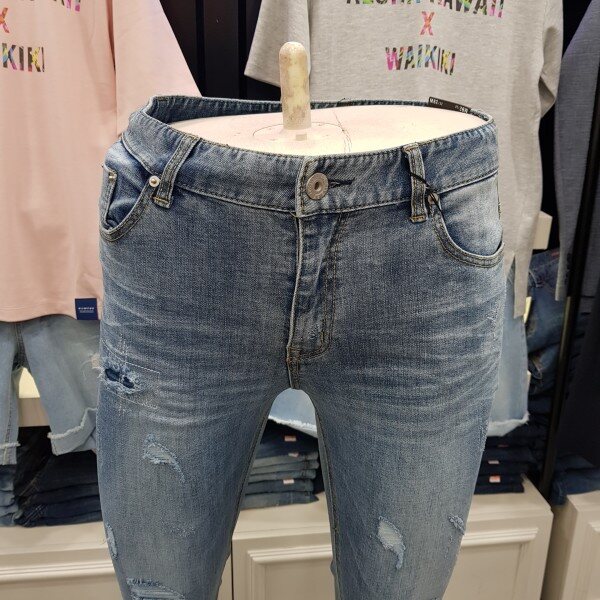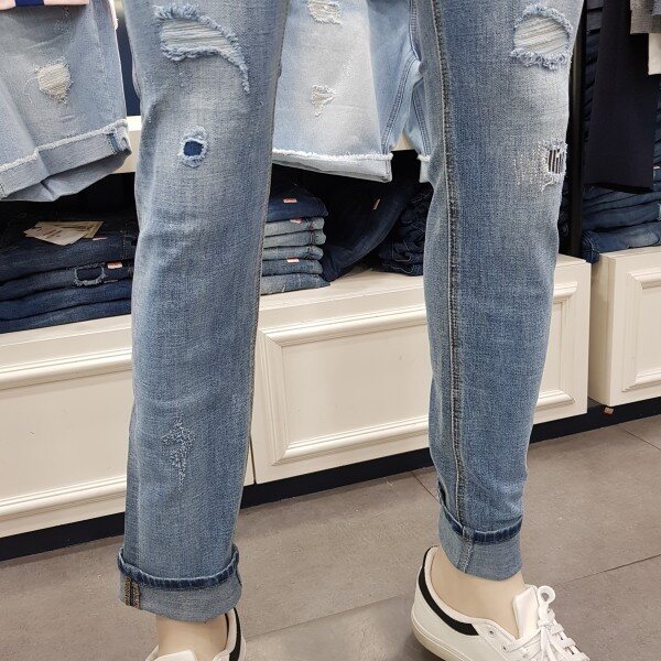 슬림일자핏의 워싱과 찢청 모두 가미된청바지!!스판이 들어있어 착용감이 편하며,핏이 붙는 슬림핏이라 좀 붙는핏을 좋아하시면 이제품이 제격입니다~?워싱도 예쁘고 여기 저기 찢청이 특이 합니다~저렴한 가격에 가성비가 아주좋아요~세탁도 용이하며,물빠짐이 거의 없어요~좀 편하게 착용을 원하시면 한사이즈 크게 주문하시길 권해드립니다☆☆컬러는 중청 ☆☆☆☆사이즈는 28,30,32,34☆☆