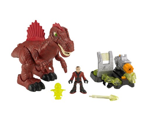 -. Feature : Press a button and Spinosaurus walks & roars like a real dinosaur! / Removable armor for classic dino play! / Lots of imaginative play for little dino lovers! / Imaginext figure fits in control station! / Includes Spinosaurus, armor, Imaginext figure, figure's armor, and projectile for cannon