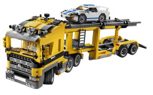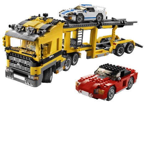 Build the ultimate car transporter! Roaring down the road with a cargo of cars, the giant Highway Transport carrier has working steering and a trailer that lowers to load and unload vehicles! It can even carry #6743 Street Speeder. Includes instructions for rebuilding into a powerful tow truck or a huge mobile crane for a great 3-in-1 building experience! Features functioning steering and a trailer that lowers! Rebuild into a powerful tow truck or a huge mobile crane! Highway Transport carrier measures over 19 inches (50cm) long!Feature