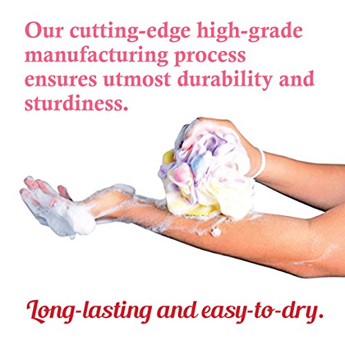 -. Feature : PREMIUM SPA-QUALITY EXPERIENCE: Spa-like magic is now at your fingertips! Enjoy a clean and truly refreshing shower or spa-like bathing experience with ANFAAL exquisite, quality sponge shower poufs. Whether you're washing gently or scrubbing away dead skin, our intricately designed shower poufs make bathing luxuriously easy. Made from high quality Polyethylene, our Loofahs are unbelievably soft & firm with high density durability, keeping soap locked in longer for more lather. / DURABILITY BEYOND WORDS: Unlike other shower bath pouf scrubbers that wear and tear overtime due to below par materials and flimsy mesh netting, our cutting-edge high-grade manufacturing process ensures utmost durability and sturdiness. Long-lasting and easy-to-dry, these loufahs never lose their shape, day after day, shower after shower. We assure that you're getting the most quality product of its kind on the market today. A must-have bathroom essential for ever home! / SAFE &SUPERB EXFOLIATION: Made from 100% BPA free & PVC free, Eco-friendly & Non-toxic materials, the ANFAAL premium mesh shower pouf ensures the most safest exfoliation of your body and skin. The premium mesh tenderly exfoliates your skin, effectively removing dead skin cells, while rendering your skin smooth, silky and squeaky clean. The large sized loufahs weighing 75 grams each lather perfectly with any kind of soap. Use the long hanging ribbon to hang for easy dry after use / PERFECT GIFT FOR JUST EVERYONE: Birthdays, father's or mother's day, house-warming parties or simply because you care - you're covered here! These terrific set of 6 gorgeous multi-coloured and visually enticing bath shower sponge loofahs make the ideal gift for anyone in your life. Share the treasure of enchantingly smooth, wondrously silky and radiantly beautiful skin with loved ones, friends, family, work colleagues or even that special someone your heart flutters for! / 100% RISK-FREE MONEY BACK GUARANTEE- ANFAAL is a truly unique company that offers one of the absolute best products and customer service on the market. If for any reason you decide that this product is not for you, please contact us without hesitation and we will replace or refund the product for you. 100% risk free, no questions asked, zero hassles! Simply 'Add to Cart' and enjoy this life-changing exfoliating bath sponge shower pouf - today!