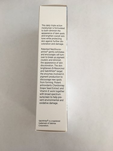 Formulated to diminish the appearance of dark spots and brighten overall skin tone while protecting skin against further discoloration and damage. NeoGlucosamine® exfoliates and encourages cell turnover to break up pigment clusters Skin brighteners B-Resorcinol and SabiWhite® help discourage new spots from forming Antioxidants Chardonnay Grape Seed Extract and Vitamin E help prevent environmental and oxidative damage