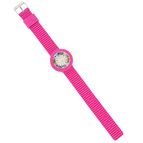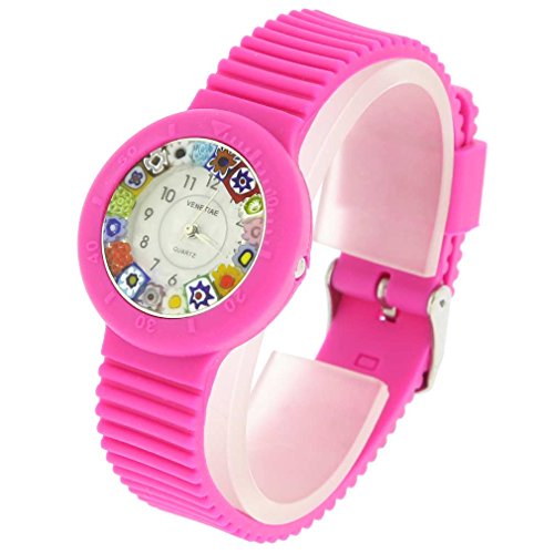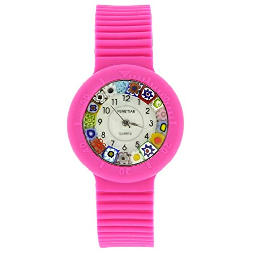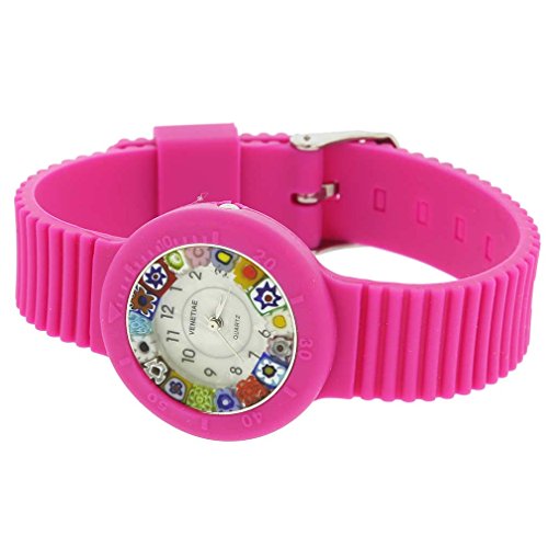 GlassOfVenice Murano Glass Millefiori Watch with Rubber Band - Pink