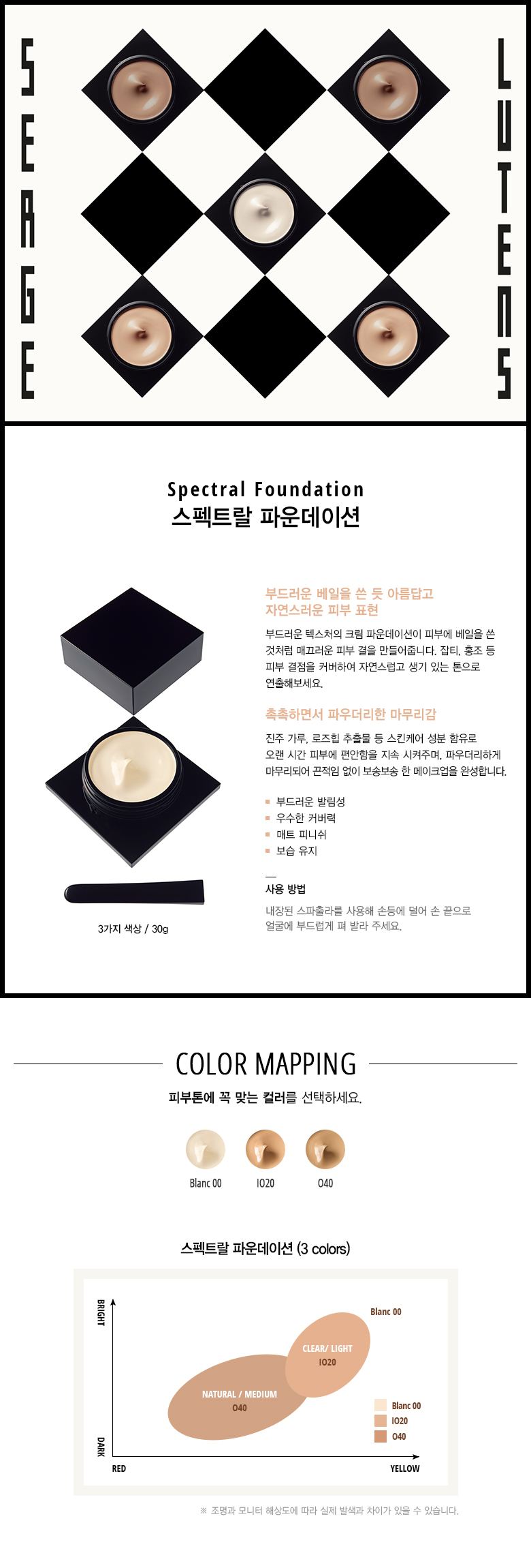블랑00: 정제수, 디메치콘, 글리세린, 나일론-12, 변성알코올., 티타늄디옥사이드, 에칠헥실메톡시신나메이트, 티타늄디옥사이드, 부틸렌글라이콜, 디메치콘/비닐디메치콘크로스폴리머, 라우릴피이지-9폴리디메칠실록시에칠디메치콘, 디스테아디모늄헥토라이트, 피이지-10디메치콘, 페녹시에탄올, 알루미늄하이드록사이드, 알루미늄디스테아레이트, 이소스테아릭애씨드, 트리소듐이디티에이, 알루미나, 트리에톡시카프릴릴실란, 아르간트리커넬오일, 황색산화철, 에탄올, 향료, 진주가루, 적색산화철, 비에이치티, 폴리실리콘-2, 토코페롤, 고추나물추출물, 로즈힙열매추출물