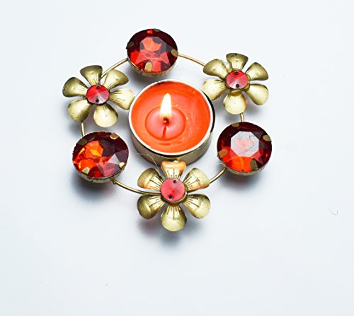 Beautiful Tea Light Candle Holder in Floral Design, Made of Metal to enhance the Decoration of your home. (Size: L- 11 cm , W-11 cm, H-2 cm)