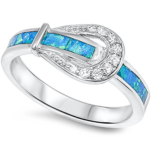 -. Title : Lab created Blue Opal & Cz Belt Buckle .925 Sterling Silver Ring Sizes 5-10