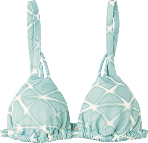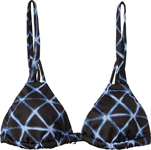 Patterned triangle bikini top with adjustable over-the-shoulder straps with front mini-strap detail