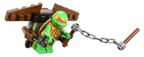 -. Feature : Includes 4 minifigures with weapons and accessories: Donatello, Michelangelo, Mutated Dr; O'Neil and The Kraang / T-Rawket features an ejector seat, glider, control panels, pizza shooter, pizza, canister with mutagen bomb neutralizer, flick missile, flame exhaust / Kraang Ship features a cockpit, control panel, 2 side flick missiles, lever-operated ooze barrel dropper, 2 ooze barrels and translucent elements / Weapons include a bo staff and a nunchuk; Also includes a Turtle backpack glider / T-Rawket measures over 2" high, 11" long and 3" wide; Kraang Ship measures over 3" high, 4" long and 5" wide