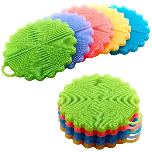 Product Feature: High Quality This soft cleaning brush is made of high-quality and Food grade silicone. BPA-free, FDA-approved. Speedy natural drying, no bacteria, no deformation, no residue. tear resistance, feel is very good; it's easy for you to take it anywhere with the super tiny dimensions. Easy To Clean and Keep Dry They can be easily sanitized - unlike regular sponges that are bacteria magnets. Just rinse the scrubber clean with water. It's easy to rinse all the food particles out of it. It's easy to use, easy to clean, easy to travel with! It has a neat cut out at the top, so you can hang the scrubber to dry. Versatile Dish Scrubbers The silicone antibacterial sponges are designed to be dish scrubbers or veggie scrubbers, but can be also used as coasters or pot holders since they are double sided and heat resistant. They can even be used to clean makeup brushes!