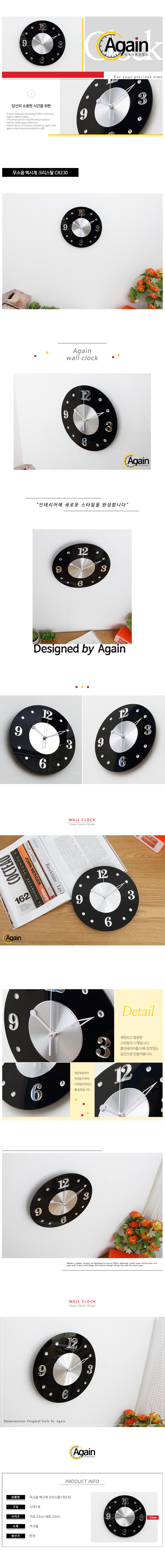 - 품명 및 모델명무소음 벽시계 크리스탈 CR230