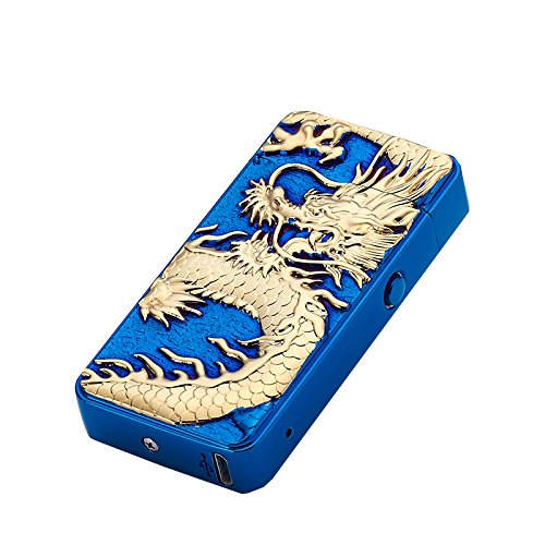 DaLanZom® Chinese Dragon USB Rechargeable Windproof Electric Plasma Arc Lighter , Flameless Electronic Pulse Arc Cigarette Lighter Set with USB Charging Cable (Dark Blue)