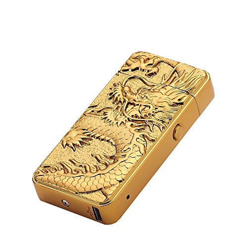 DaLanZom® Chinese Dragon USB Rechargeable Windproof Electric Plasma Arc Lighter , Flameless Electronic Pulse Arc Cigarette Lighter Set with USB Charging Cable (Gold)