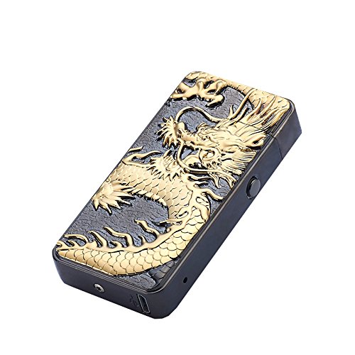 DaLanZom® Chinese Dragon USB Rechargeable Windproof Electric Plasma Arc Lighter , Flameless Electronic Pulse Arc Cigarette Lighter Set with USB Charging Cable (Black)