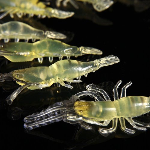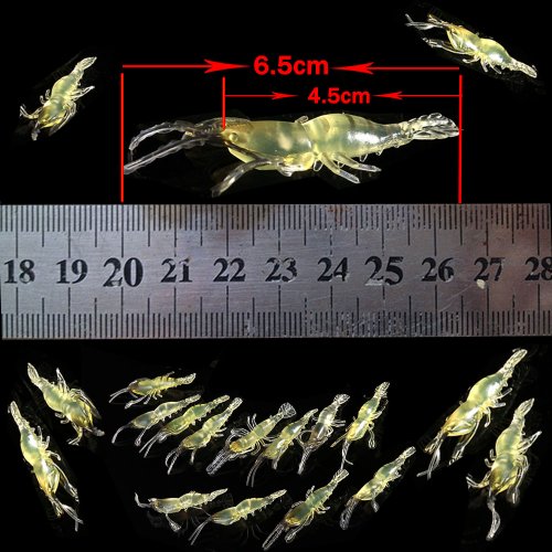-. Feature : Length:4.5cm/1.77" / Package including: 20 x Soft Shrimps Baits / Target Species: Bream, Bass, Flathead, Whiting, Snapper, Trevally, Flounder, Jewfish, Kingfish, Hairtail, Golden Perch, Trout, Redfin, Bonito, Salmon, Tailor, Bonito, Small Tuna, Yellowtail, Mackerel, Squid and any saltwater species that swims! / A cavity in the body of shrimp used for insert hooks / When we take it in hand,it just seems likes the real shrimp and extrodinary Colours!!! Bright colors to attract big fish!Silicone Shrimp simple to use, sit well on the hook.(Hook is not included.)