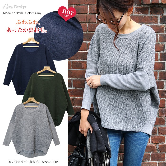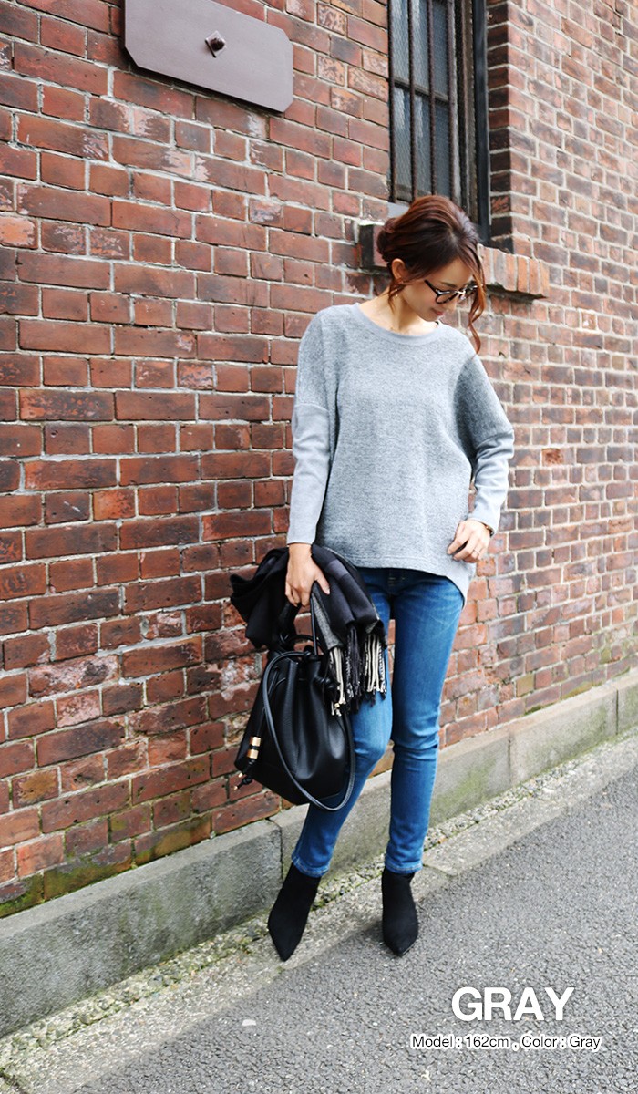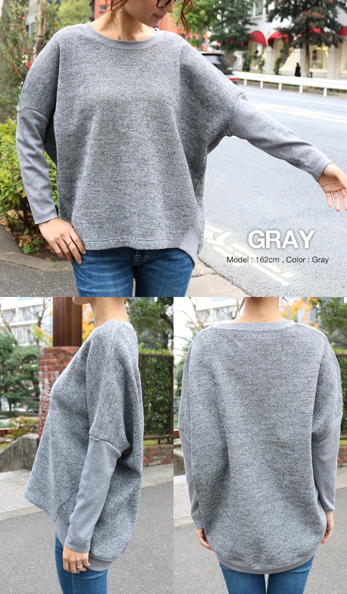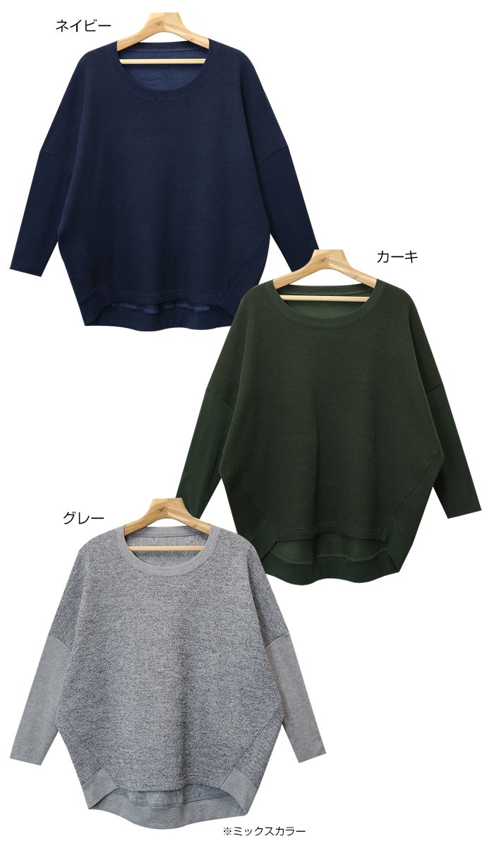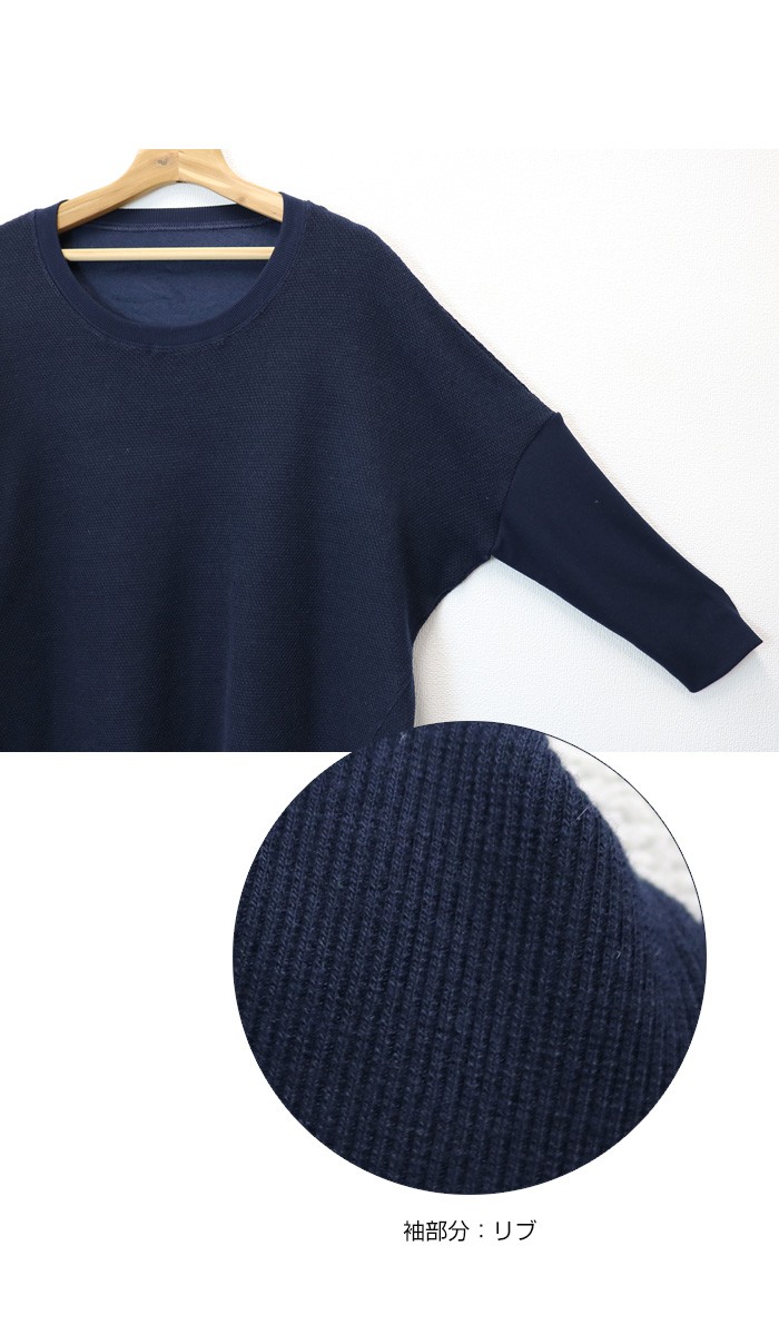 身頃はざっくりとしたニットソー。袖や裾は柔らかな細リブを使用したデザインです。たっぷりとしたドルマンのシルエットで着心地はラクチンながらも、袖リブで引き締めた着痩せラインにみせてくれる1枚。普段のカジュアルコーデにさらりと着用したいアイテムです♪♪MODEL:身長162cm